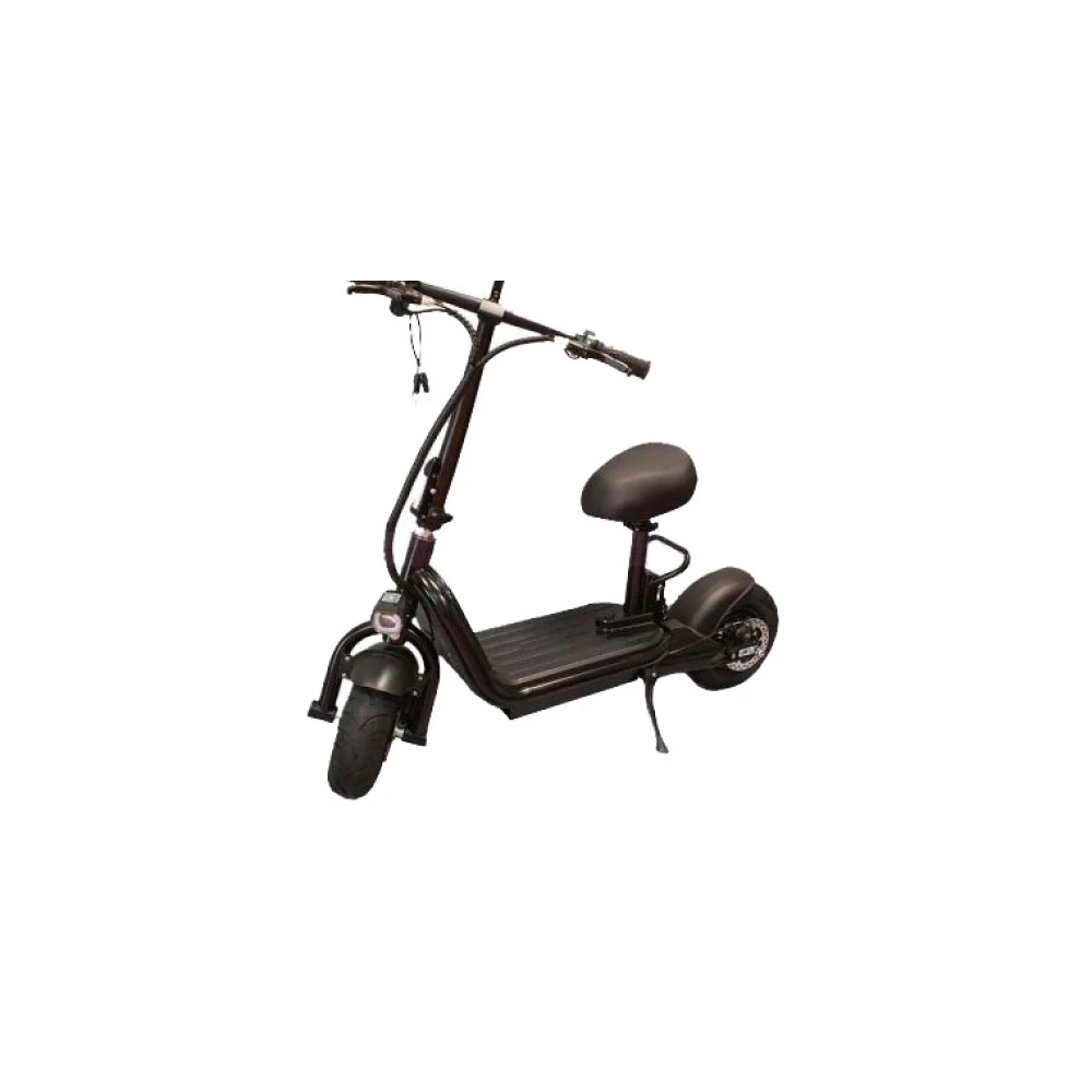Рама электросамоката изготовлена из металлического сплава повышенной прочности, а нагрузка на модель (включая пользователя и грузы) не должна превышать 110 кг. Встроенное сиденье гарантирует повышенный комфорт и практичность поездок.