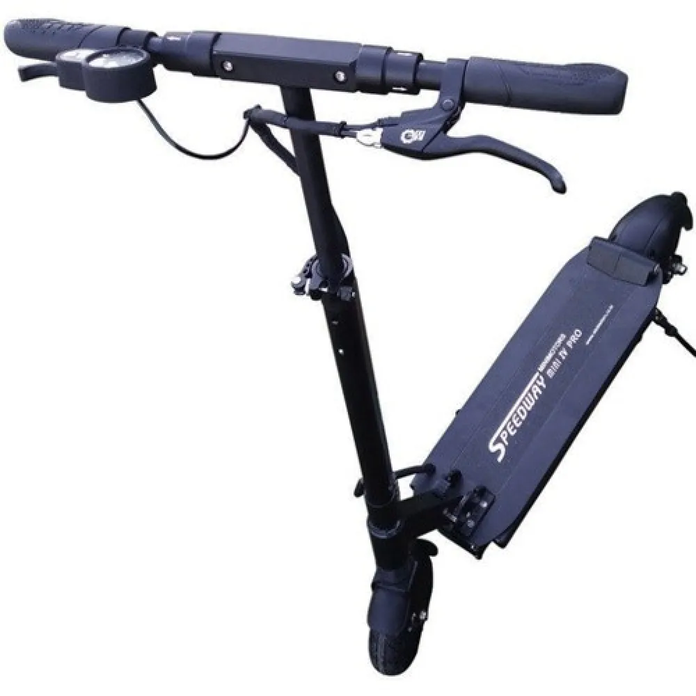 Электросамокат Speedway Mini 4 весит всего 16 кг, легко складывается, сначала отпустить руль потом прижать стойку к платформе. Так самокат занимает очень мало места, его не сложно убрать на хранение. Не смотря на такой вес нагрузка на самокат 120 кг.