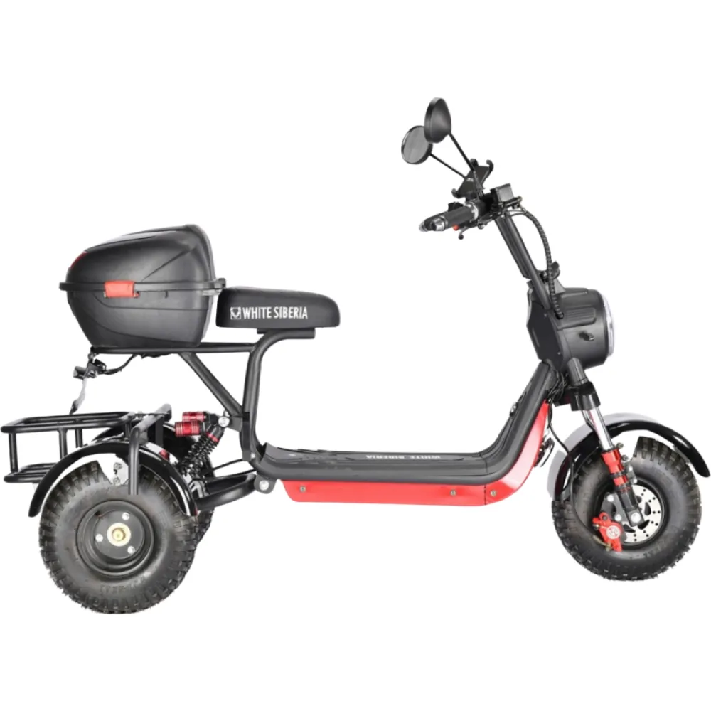 Электроскутер CityCoco WHITE SIBERIA TRIKE MINI 1500W 48V 18Ahмощный трицикл от российского бренда White Siberia. Визуально модель доказывает, подчеркивает силу и назначение. Электроскутер создан для целеустремленных смелых мужчин и женщин, ведущих активный образ жизни, для которых скоростная езда и прогулки на свежем воздухе занимают лидирующие позиции.