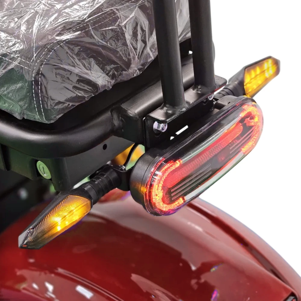 Электроскутер Citycoco GT X7 PRO в стильном красном цвете — это воплощение мощи и надежности для любителей бездорожья. Оснащенный двигателем мощностью 2000W и аккумулятором емкостью 20 Ah, он обеспечивает пробег до 50 км на одном заряде, развивая скорость до 45 км/ч. С максимальной нагрузкой в 200 кг, этот скутер идеально подходит для поездок вдвоем, особенно благодаря складным подножкам для второго пассажира.Скутер оснащен всеми необходимыми элементами освещения для безопасного передвижения: фарой, страбаскопами, стоп-сигналом и поворотниками спереди и сзади. Полная амортизация и гидравлические тормоза гарантируют комфортное и безопасное вождение на любых поверхностях. Большая дека для ног и широкие внедорожные колеса формата Citycoco делают его идеальным выбором для тех, кто ищет сочетание стиля, функциональности и высокой проходимости. Citycoco GT X7 PRO — ваш надежный спутник в любых условиях.